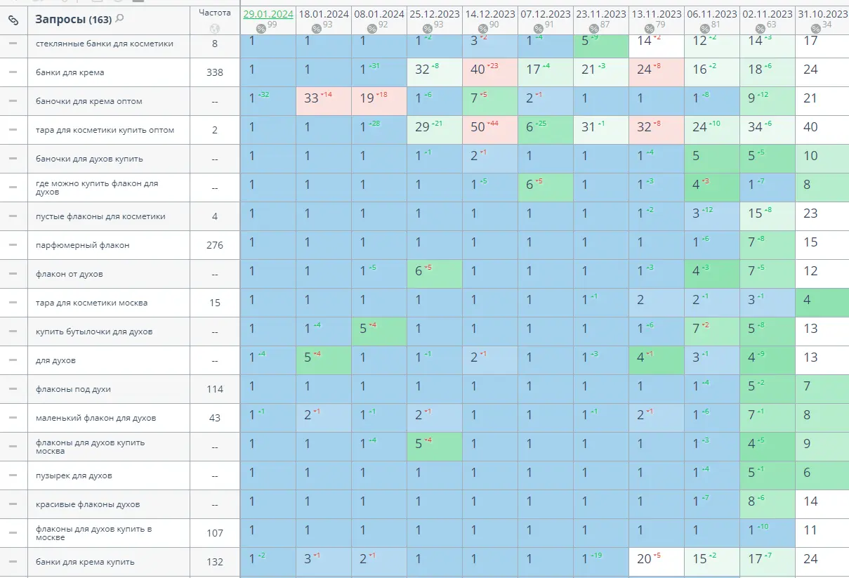 Кейс по SEO-продвижению сайта "Флаконы для духов" со всей очевидностью продемонстрировал эффективность комплексного и систематизированного подхода к оптимизации всех ключевых составляющих интернет-ресурса. Благодаря слаженной и масштабной работе по всем пунктам выработанной стратегии удалось максимизировать видимость проекта по целевым запросам коммерческой семантики и кратно нарастить приток ценного трафика из поисковых систем.