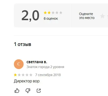 - Один негативный отзыв на Яндекс.Картах с оценкой 2.0 — и это всё, что видел потенциальный клиент.
