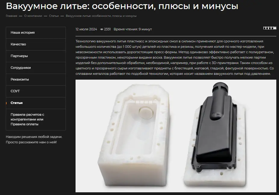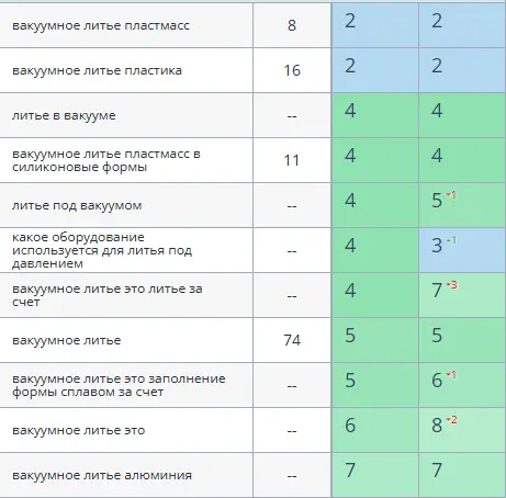 - Коммерческого спроса — почти нет. По ключевым направлениям — максимум 20–30 запросов в месяц. Причём чаще всего — в виде информационных форм: «что такое литьё по выплавляемым моделям», «способы формовки» и т. д.