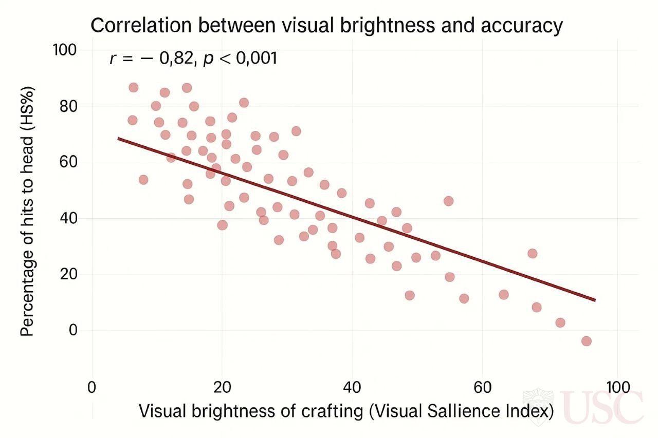 Ай-трекинг показал причину: взгляд игрока непроизвольно отвлекался на собственное оружие в 4 раза чаще, обрабатывая бесполезную визуальную информацию. Мозг тратил ограниченные ресурсы не на тактику и прицеливание, а на хаотичные блики на стволе.