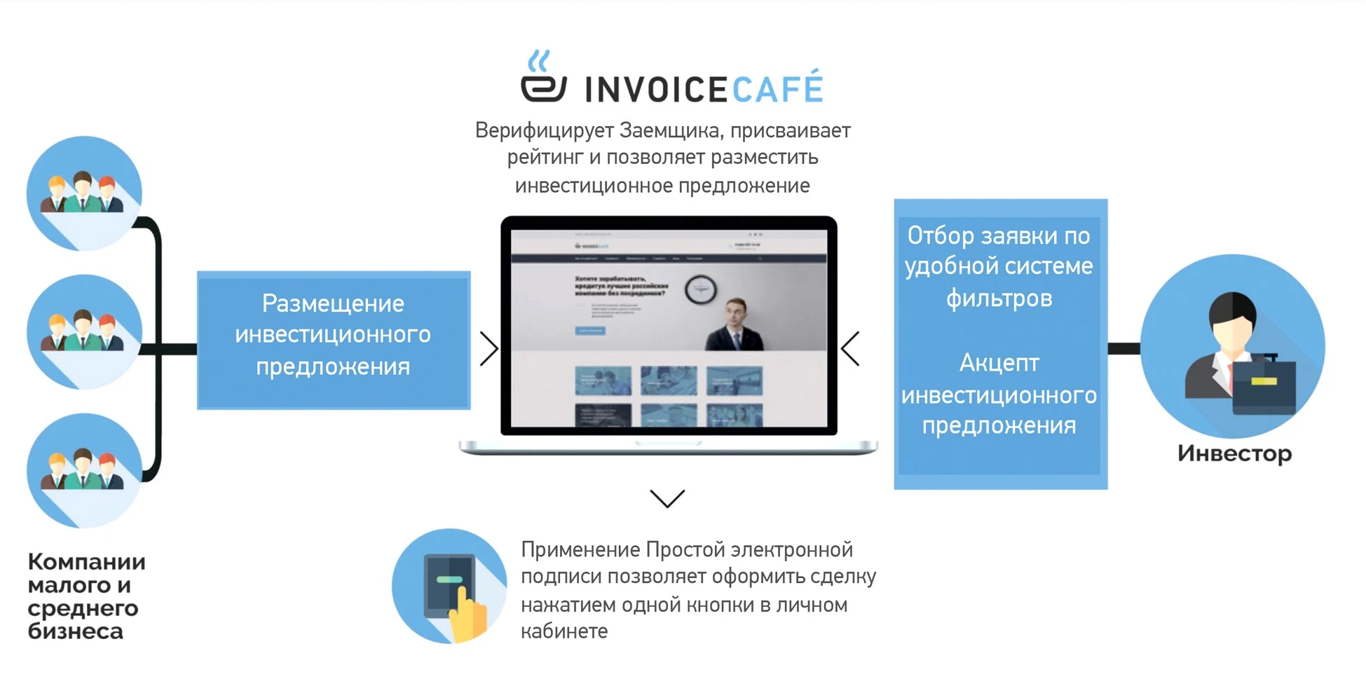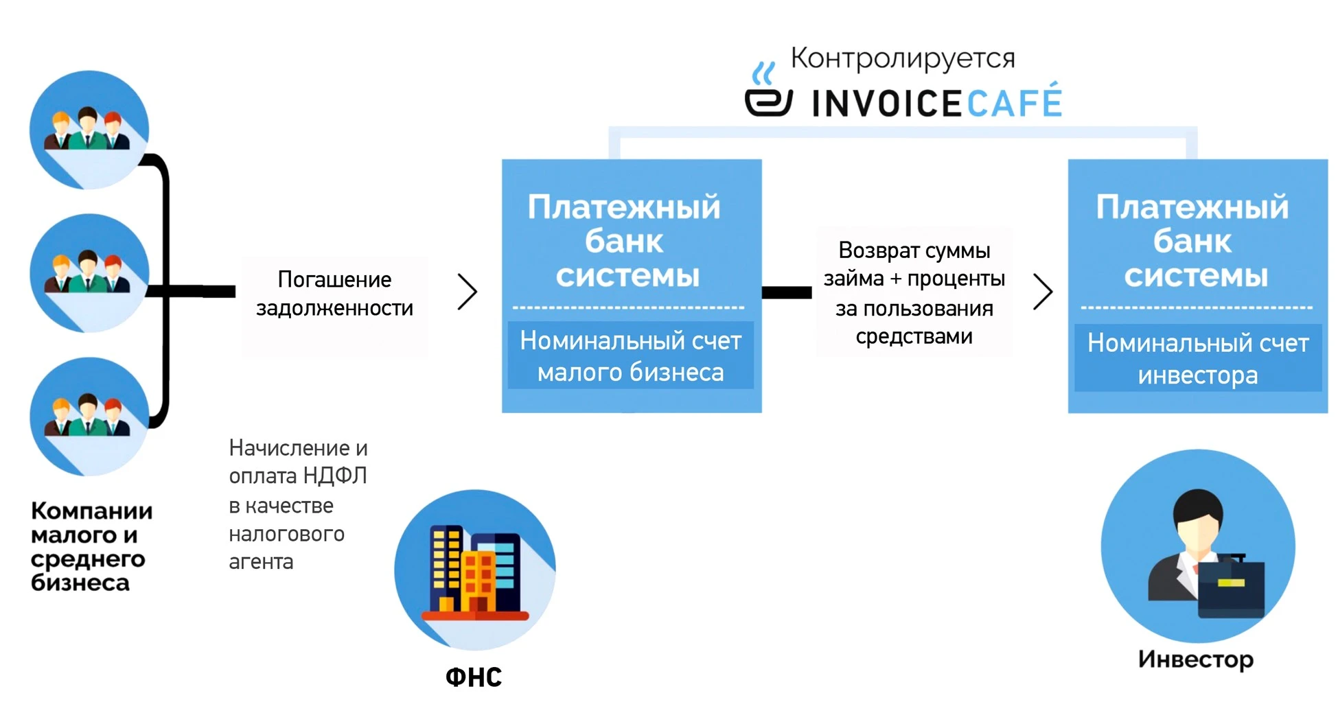 Рассмотрим схему работы на примере краудлендинговой платформы «ИнвойсКафе».