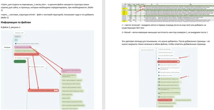 - Работа с товарной матрицей и контентом для расширения ассортимента и улучшения релевантности страниц целевым запросам.