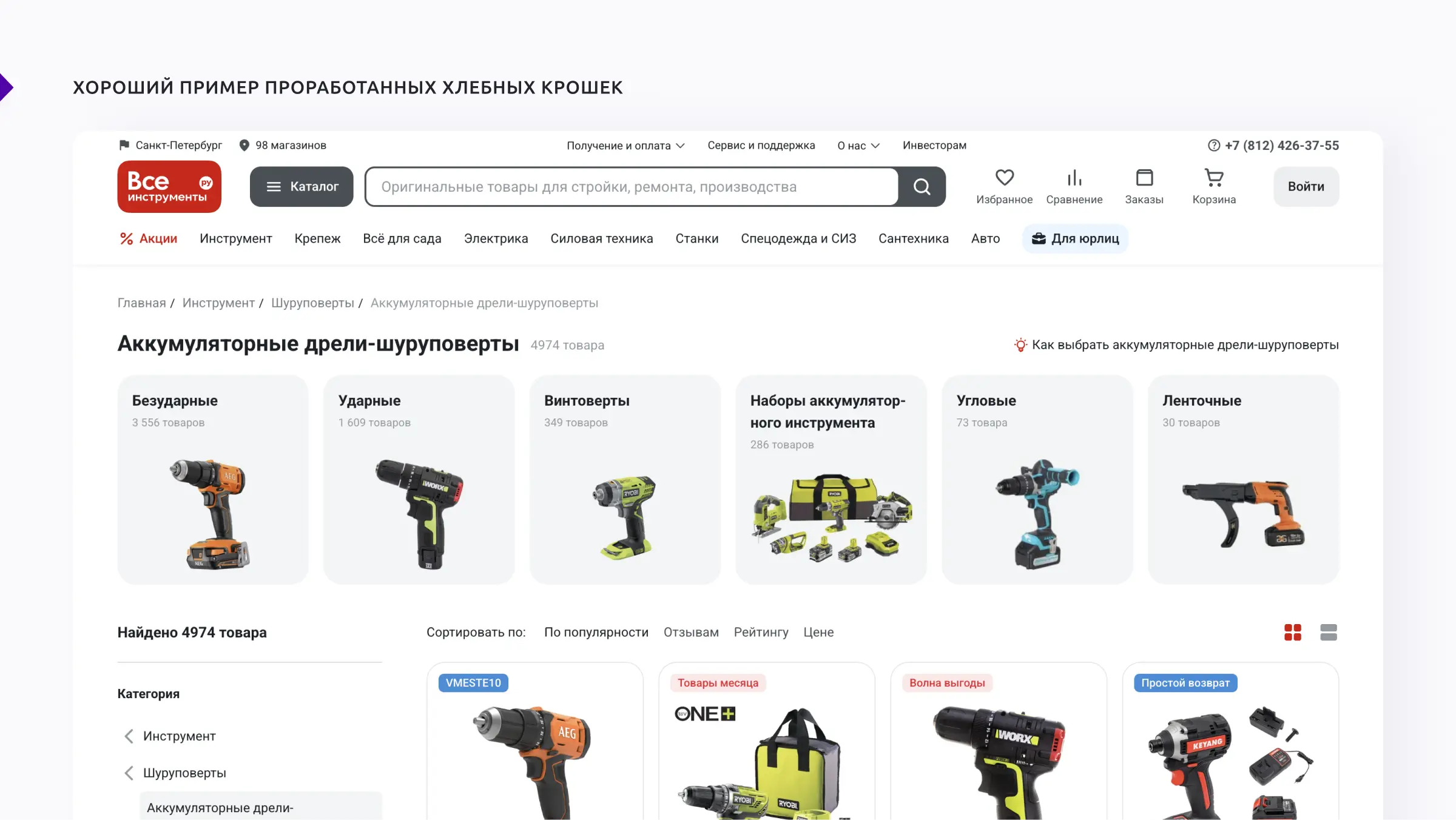 «Хлебные крошки» помогают пользователю понять, где он находится на сайте, и быстро вернуться к разделу выше. Их отсутствие особенно проблематично для сайтов с большим количеством страниц, где легко потеряться и запутаться в структуре.