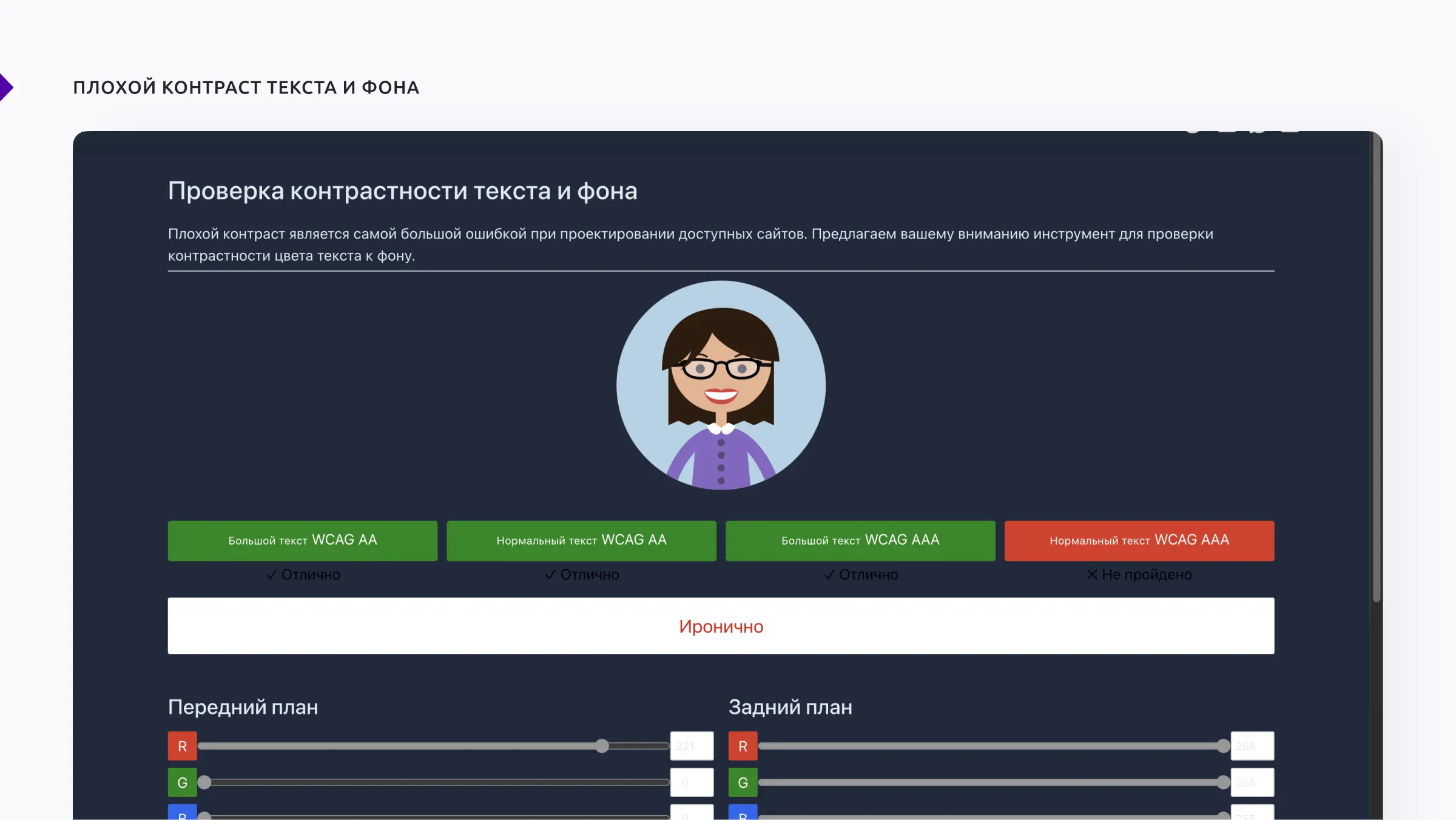 Серый текст на светло-сером фоне или белый текст на яркой картинке — классическая ошибка. Такой контент трудно читать, особенно людям с нарушениями зрения или на экранах с низкой яркостью.