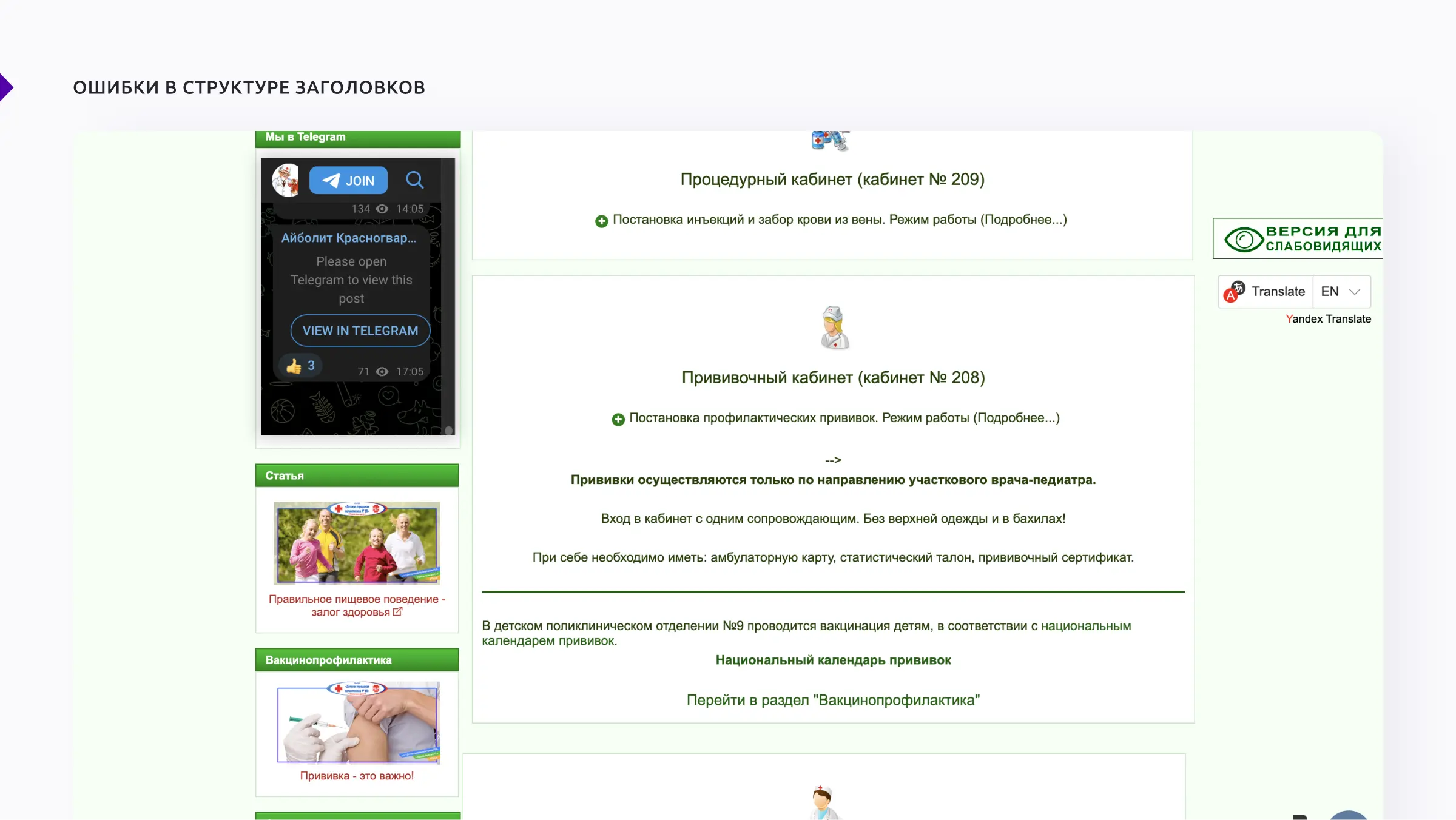 Заголовки формируют иерархию контента и помогают быстро ориентироваться в тексте. Когда они расставлены хаотично, посетителю сложнее воспринимать информацию. Например, несколько H1 на странице и отсутствие H2 и H3 делают материал визуально «плоским». Корректная структура заголовков важна не только для удобства чтения, но и для SEO-продвижения.
