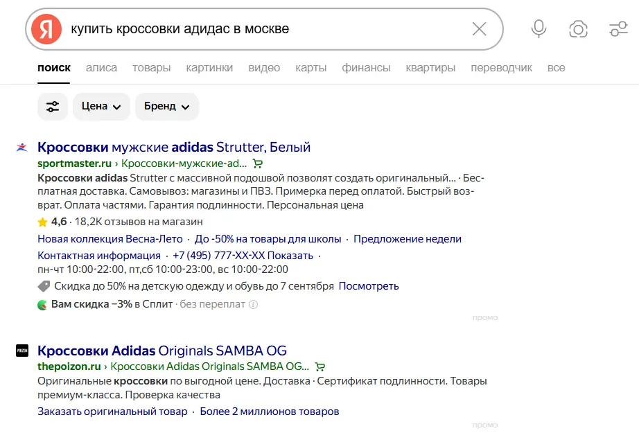 Контекстная реклама нацелена на тех, кто уже заинтересован в решении своей задачи. Когда пользователь вводит запрос, например, «купить кроссовки Adidas в Москве», он видит ваше объявление. Такой подход называется «здесь и сейчас»: реклама появляется в момент, когда потенциальный клиент уже проявил интерес.