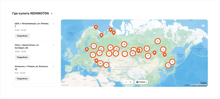 В результате работы на платформе Аспро: Премьер и 1С-Битрикс «Бизнес» Remington получил современный и удобный сайт, который стал полноценным интернет-магазином с возможностью онлайн-оплаты и доставки по всей России.