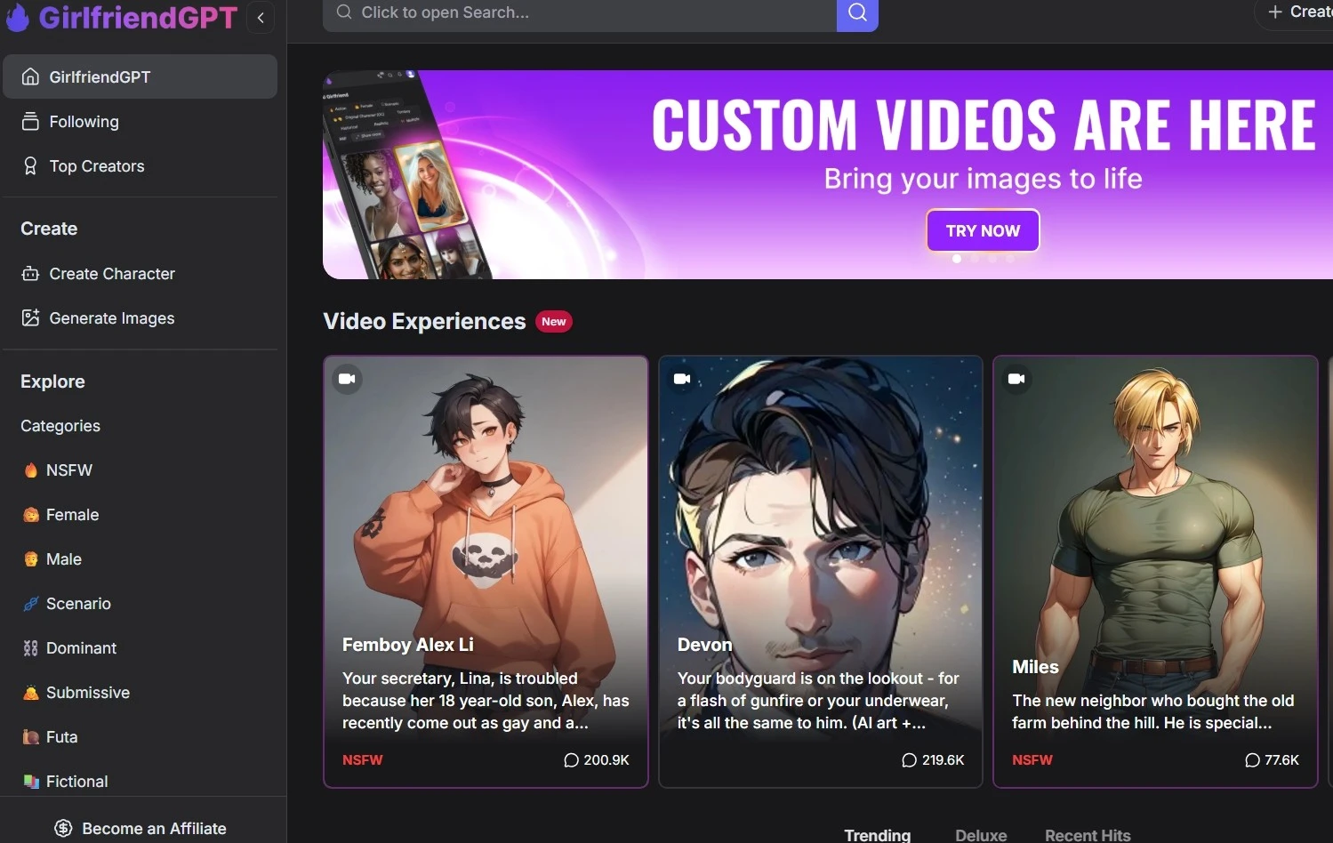 - GirlfriendGPT — огромный выбор готовых персонажей, позволяющий в один клик переключаться между различными образами для разнообразных опытов общения.