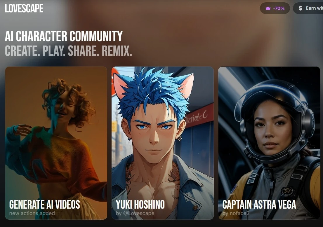 - Lovescape — создание виртуальных отношений с персонажами, настроенными на эмоциональную близость.
