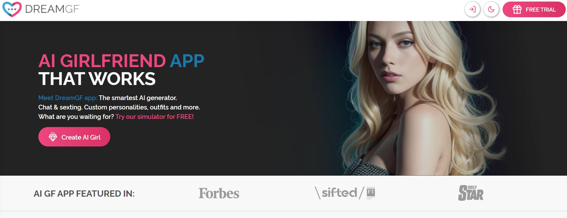 - DreamGF — позволяет визуализировать виртуального собеседника с помощью генерации фото, продолжая диалог прямо в чате для более натурального общения.