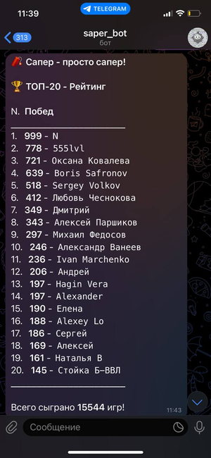 Это хорошее дополнение к любой основной механике, которую вы используете в чат-боте. Если пользователи видят свой и общий рейтинги игроков, у них просыпается азарт и желание соревноваться. Это помогает получить повторные касания и более глубокое и длительное вовлечение аудитории.