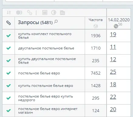 Благодаря применению технологии маркерной привязки нам удалось существенно расширить исходное семантическое ядро, добавив к нему большое количество дополнительных релевантных запросов, имеющих высокую частотность поиска. Это позволило максимально полно охватить все возможные варианты поисковых фраз, по которым целевая аудитория может искать товары в интернет-магазине домашнего текстиля.