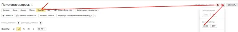 - Выгрузка активной семантики из Яндекс.Метрики за квартал с фильтрацией по отказам