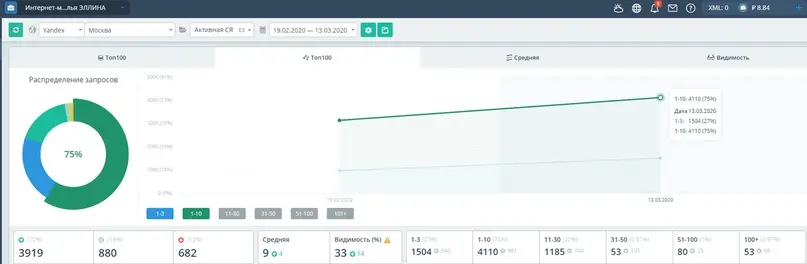 Для демонстрации роста видимости сайта в поисковых системах после применения стратегии "Активной семантики" мы будем использовать данные из двух источника: