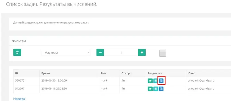 4. После завершения обработки скачали результирующий файл с расширенной семантикой.