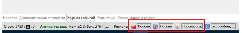 - Выбор региона (Россия) и поисковых систем (Яндекс и Google), для которых требовалось провести замер.