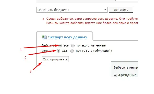 Далее весь оставшийся список релевантных запросов был скопирован для дальнейшей обработки с целью получения данных о частотности поиска.