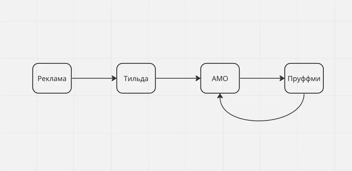 У нас изначально работала сложная связка: сайт на Тильде, лиды падают в АМО, уведомления шлются через АМО на почту и в whats app, сам вебинар проходит на Пруффми.