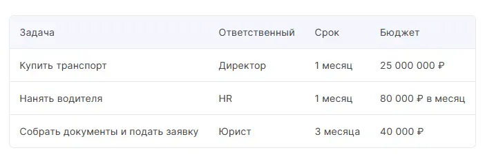Например, если вы решили взять на себя доставку товаров, вам нужно разработать подробный план с указанием ответственных, сроков и бюджета. Важно разделить задачи по шагам, например: