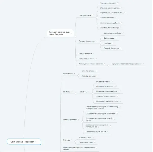Заключительным этапом анализа стало детальное изучение конкурентов в тематике электрошокеров. Я выявил ключевых игроков рынка, исследовал их сайты, собрал лучшие практики по структуре, навигации, контенту, метаданным и другим SEO-аспектам. Эта информация позволила мне сформировать эталонные критерии для дальнейшей оптимизации интернет-магазина bestshocker.ru.