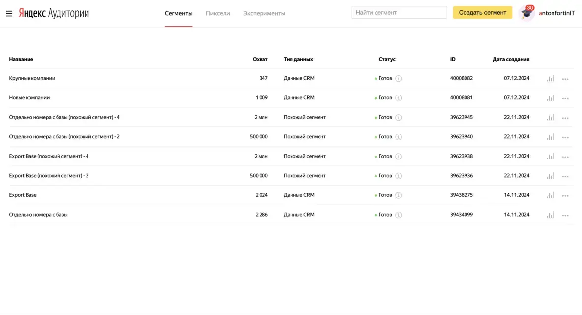 - загрузили в Яндекс.Аудитории,