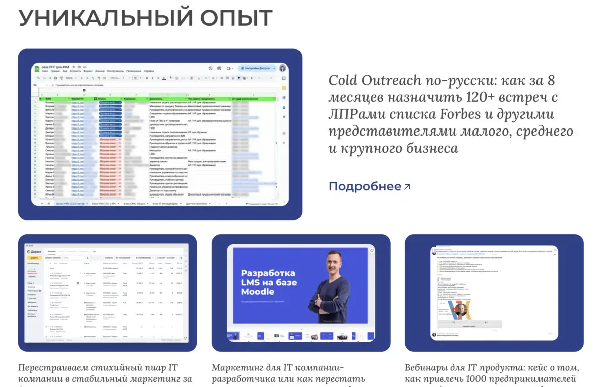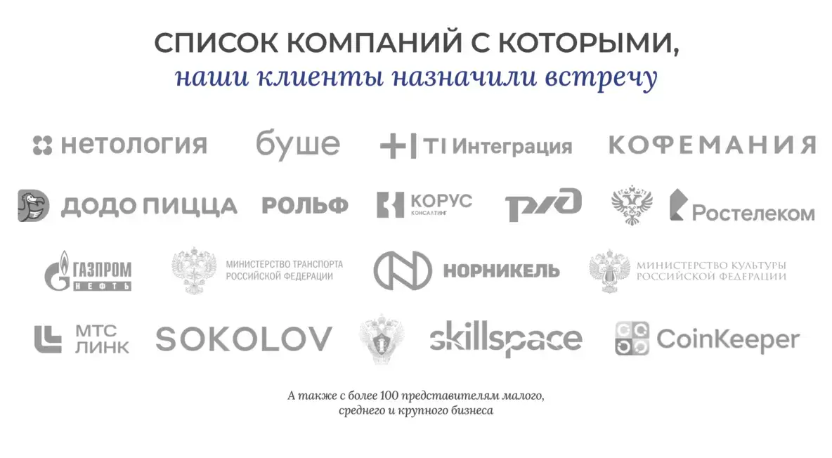 Фишка: Важен четкий оффер и предлагать готовое решение проблемы. Мы предлагали «назначение встреч с ЛПРами под ключ» — это сработало.