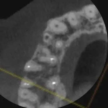 Аксиальный срез (от лат. axis — ось) - это горизонтальный срез КЛКТ, проходящий перпендикулярно длинной оси зуба.