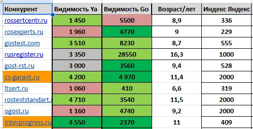 Мы проанализировали структуру конкурентных сайтов, их контент, семантическое ядро, ссылочный профиль, техническую оптимизацию и другие важные факторы ранжирования. Это позволило нам выявить их сильные и слабые стороны, а также определить области, в которых наш сайт st-sertifikaciya.ru отставал от конкурентов.