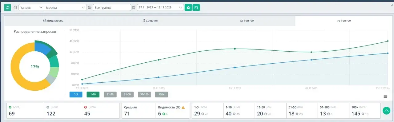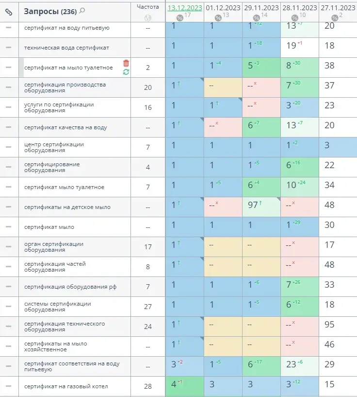 Благодаря комплексной работе с семантическим ядром и оптимизации контента мы смогли значительно улучшить релевантность страниц сайта для поисковых систем и пользователей. Это, в свою очередь, способствовало дальнейшему росту позиций и трафика.
