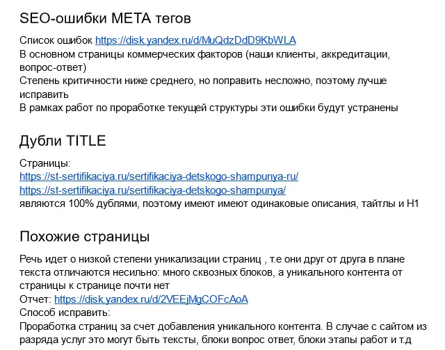 На основе результатов анализа мы составили подробный отчет, в котором были четко определены направления для улучшения нашего сайта и приведения его в соответствие с лучшими практиками в отрасли. Эта информация стала отправной точкой для последующих этапов оптимизации.